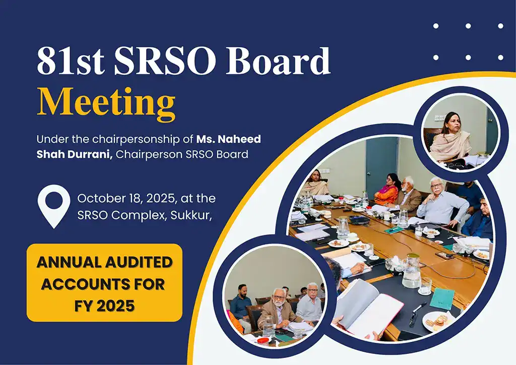 The 81st meeting of the Sindh Rural Support Organization (SRSO) Board was held on October 18, 2025, at the SRSO Complex, Sukkur, under the chairpersonship of Ms. Naheed Shah Durrani, Chairperson of the SRSO Board.